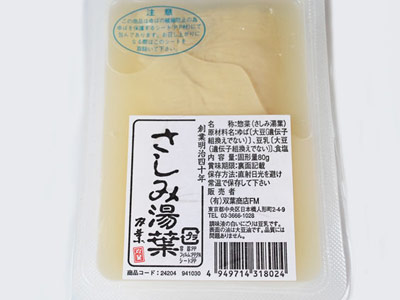 | 汲み上げ湯葉 価格:750円 | さしみ湯葉 価格:650円 | 味付湯葉 価格:650円 |